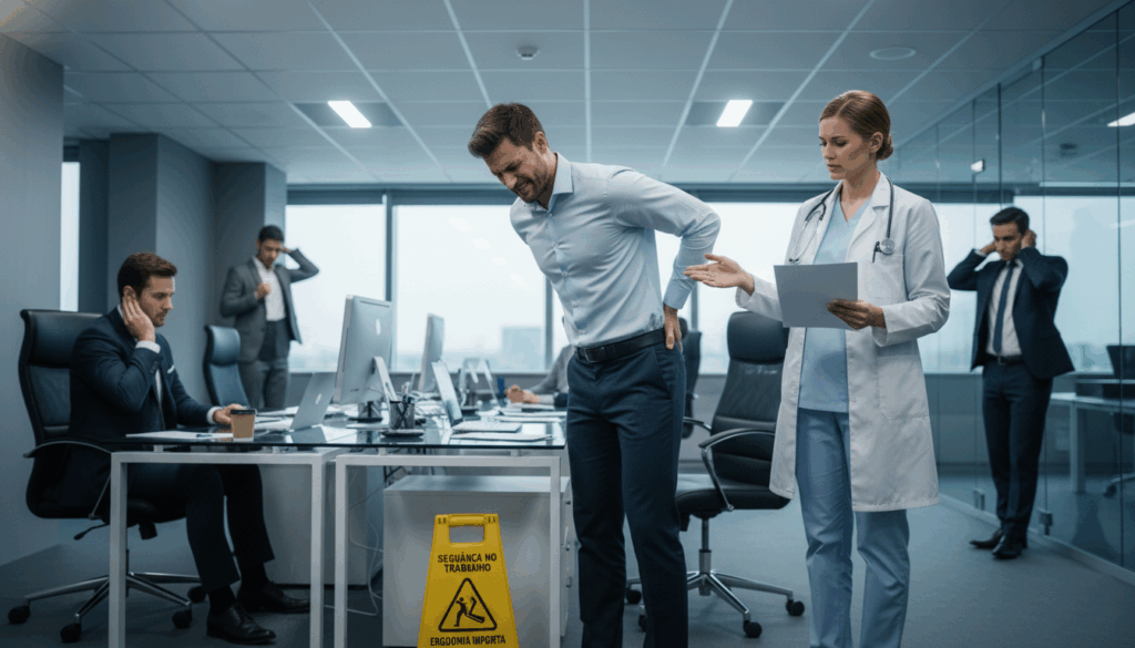 Exemplo do dia a dia: Você está operando uma máquina na fábrica e, por falta de manutenção da empresa, ela falha e você machuca a mão. Ou, você trabalha em um escritório e, por anos, a empresa não oferece cadeiras ergonômicas, causando uma lesão grave na sua coluna.